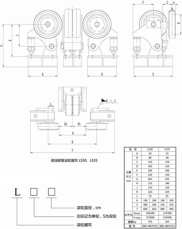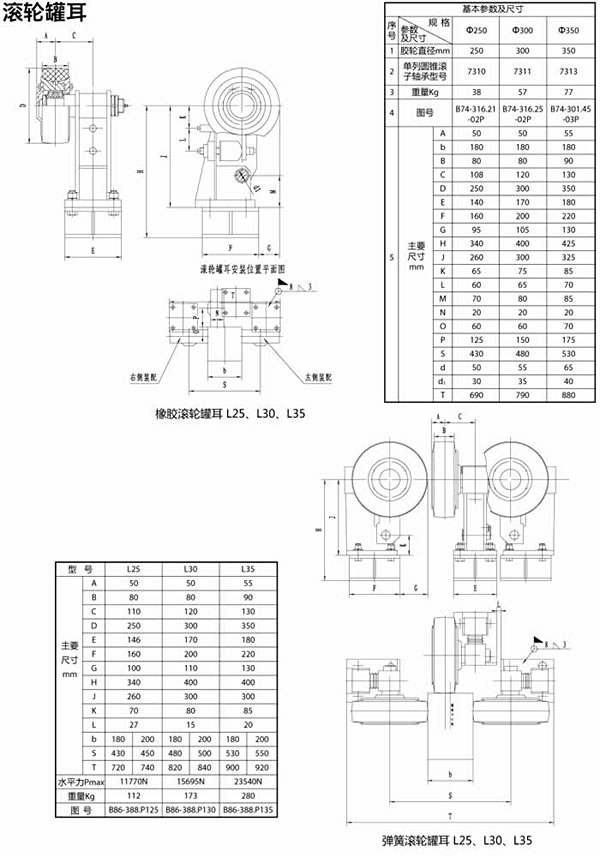 聚胺脂橡膠滾輪罐耳裝置(簡稱滾輪罐耳),是參考多年來各礦井使用滾輪罐耳的形式,廣泛吸取用戶的使用意見改進而成??筛鶕?jù)用戶的使用條件和要求,可采用橡膠緩沖、彈簧緩沖、碟簧緩沖、液壓緩沖、復合緩沖。其使用壽命長、安全可靠性高、維護方便等特點。
